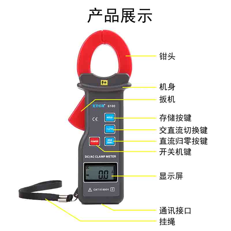ETCR6100直流/交流鉗形電流表又名鉗形電流表,用于直流、交流電流測(cè)量,鉗表采用霍爾感應(yīng)及數(shù)字集成技術(shù),鉗頭無任何裸露金屬導(dǎo)體,非接觸測(cè)量,確保操作安全。廣泛適用于電力、通信、氣象、鐵路、油田、建筑、計(jì)量、科研教學(xué)單位、工礦企業(yè)等領(lǐng)域,是電工安全檢測(cè)的必備工具。