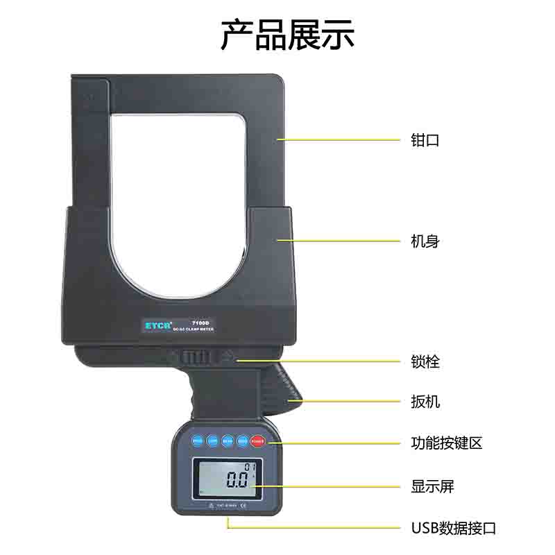 ETCR7100D超大口徑直流/交流鉗形電流表又名鉗形電流表,用于直流、交流電流測量,鉗表采用霍爾感應(yīng)及數(shù)字集成技術(shù),鉗頭無任何裸露金屬導(dǎo)體,非接觸測量,確保操作安全,超大口徑,適合鉗測粗大導(dǎo)線。廣泛適用于電力、通信、氣象、鐵路、油田、建筑、計量、科研教學單位、工礦企業(yè)等領(lǐng)域,是電工安全檢測的必備工具。