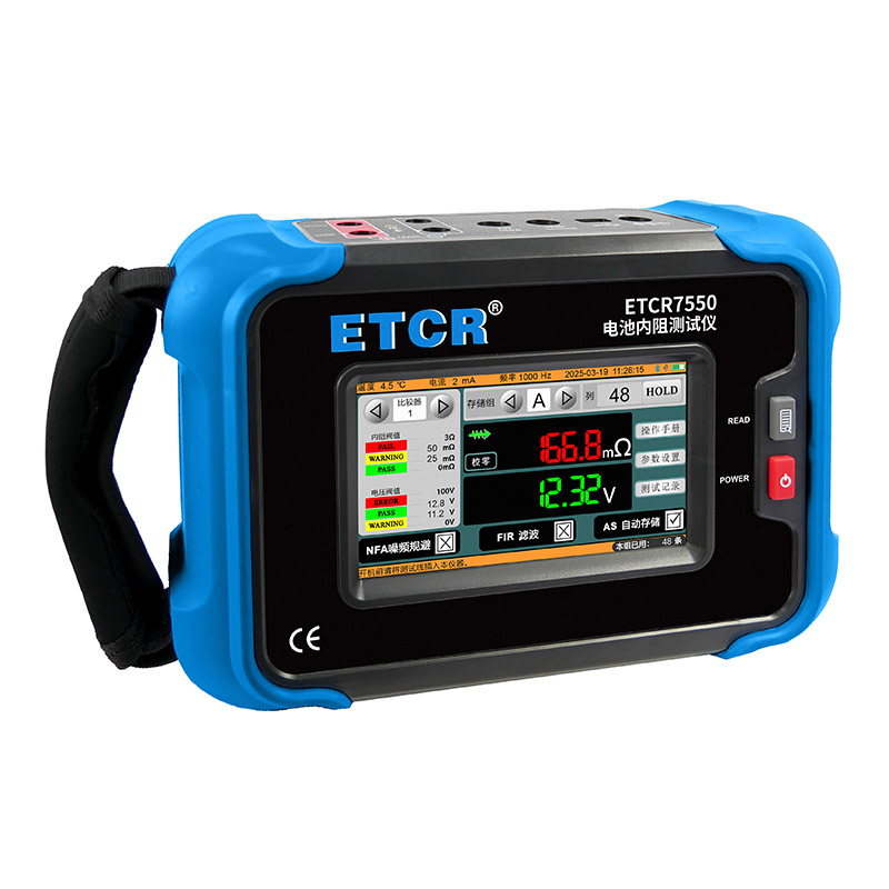 ETCR7550電池內(nèi)阻測試儀又稱充電電池測試儀、電池測試儀,本儀器是用于測量鉛蓄電池、鎳鎘、鎳氫電池、鋰電池的內(nèi)阻、電壓、溫度以判斷電池健康狀態(tài)的測量儀器。本儀表使用開爾文交流4線法測量電池內(nèi)阻,可不受測試線、端子與電池電極之間接觸電阻影響測量正確的測量值。