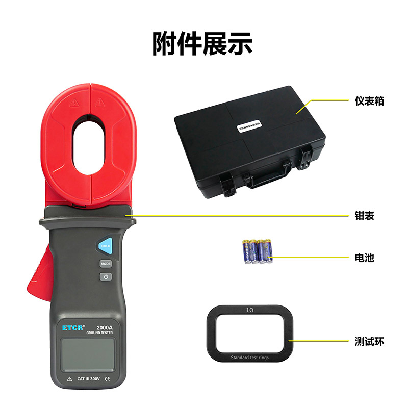ETCR2000A鉗形接地電阻儀又稱鉗形接地電阻表、接地電阻儀、回路電阻測試儀、單鉗接地電阻測試儀,用于接地電阻、回路電阻測量、接地故障判斷。在測量有回路的接地系統(tǒng)時,不需斷開接地引下線,不需輔助接地極,安全快速、使用簡便。鉗形接地電阻儀廣泛應(yīng)用于電力、電信、氣象、油田、建筑及工業(yè)電氣設(shè)備等的接地電阻測量、回路電阻測量。長鉗口特別適宜于扁鋼接地的場所。