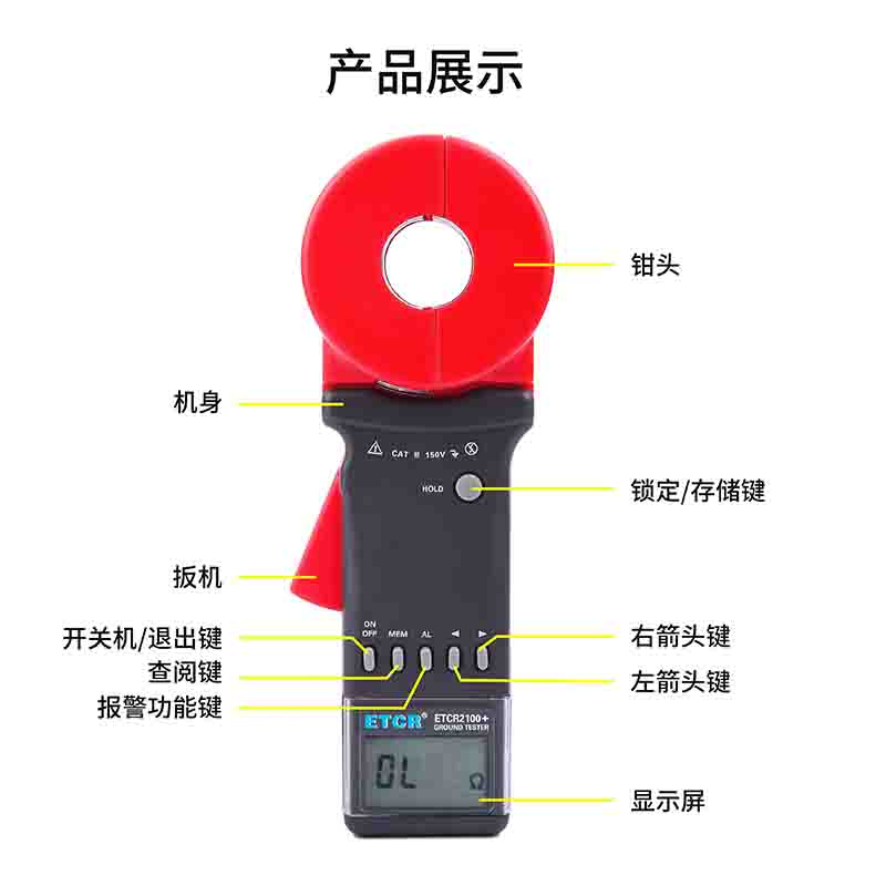 | ETCR2150 | Φ32mm | 0.010Ω-1500Ω | 0.000mA~40A | USB/藍(lán)牙通信、電壓測(cè)量 |
