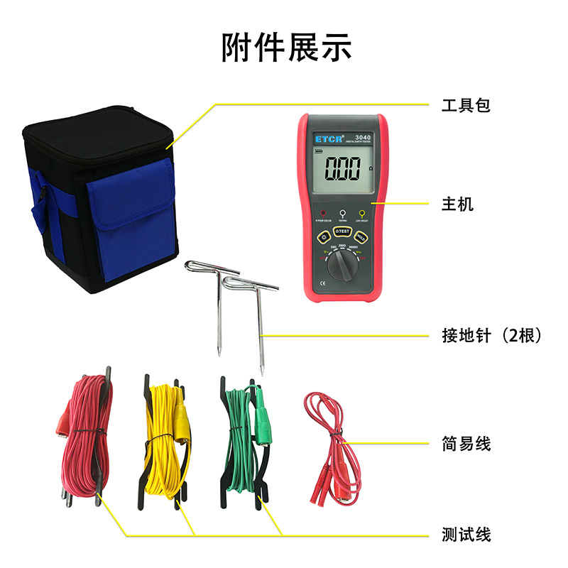 ETCR3040數(shù)字式接地電阻測(cè)試儀由主機(jī)、測(cè)試線(xiàn)等組成。具有自動(dòng)關(guān)機(jī)功能、儀表全量程自動(dòng)換擋、抗干擾能力強(qiáng)、操作更簡(jiǎn)易。其廣泛應(yīng)用于電力、電信、氣象、油田、建筑、防雷及工業(yè)電氣設(shè)備等的接地電阻測(cè)量。