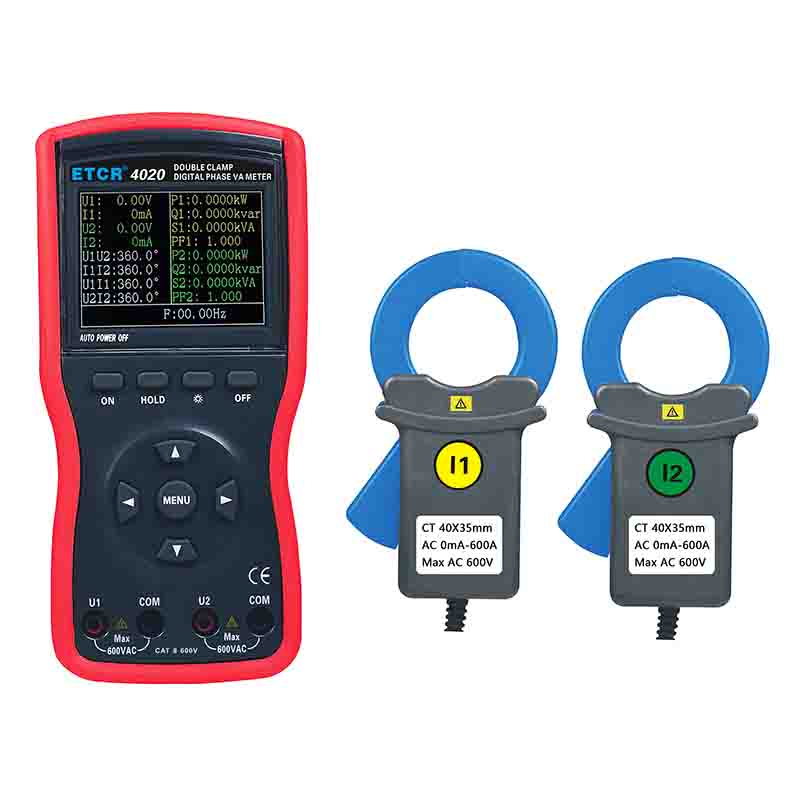 ETCR4020大口徑雙鉗數(shù)字相位伏安表Φ40mm0~360°0.00V~600V0mA~600A0.0W~360kW