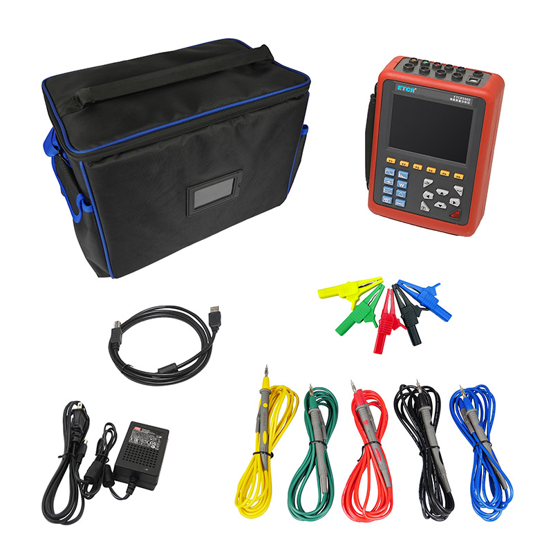 ETCR5000電能質(zhì)量分析儀又稱電力質(zhì)量分析儀、電力參數(shù)測試儀、諧波分析儀,是一款專為現(xiàn)場測試三相電能參數(shù)的多功能、智能化綜合型測試儀器??赏瑫r測量4路電流(ABC三相及中性線電流),4路電壓(ABC三相電壓及中性線對地電壓)、電流電壓的峰值、一段時間內(nèi)的最大最小值、三相不平衡度、短時電壓閃變、變壓器K因數(shù)、有功功率、無功功率、視在功率、功率因數(shù)、位移功率因數(shù)、有功電能、無功電能、視在電能、諧波比、總諧波失真度等;顯示電流電壓的實時波形、相量圖、諧波比柱形圖;動態(tài)捕捉電壓電流瞬時變化,監(jiān)測啟動電流,監(jiān)測各電力參數(shù)并生成告警列表,長時間記錄測試數(shù)據(jù)并生成趨勢曲線圖等功能。適用于電力、石化、冶金、鐵路、工礦企業(yè)、科研院校、計量部門等。