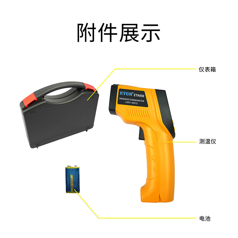 ETA950非接觸式紅外測溫儀-50℃~950℃0.1℃8um~14um9V 碳性或堿性電池