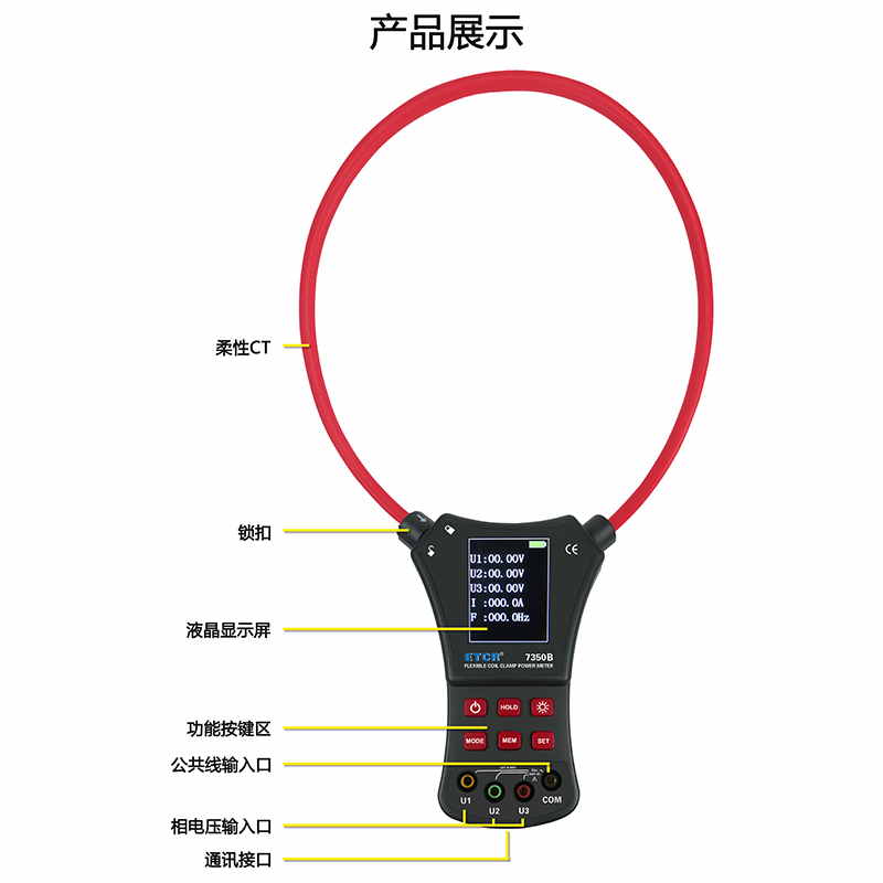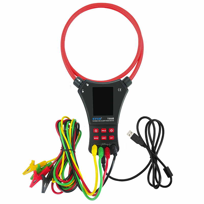 ETCR7350B柔性鉗形功率表又名羅氏線圈功率表、洛氏線圈功率表,用于現(xiàn)場測量三相交流電壓、電流、電壓間相位、電壓電流間相位、頻率、相序、電能、有功功率、無功功率、視在功率、功率因數(shù)、總功率等電能參數(shù)。還能用于判別變壓器接線組別、感性、容性電路,讀出差動保護各組CT之間的相位關(guān)系,檢查電度表的接線正確與否,檢修線路設(shè)備等,為用電檢查人員提供一種安全、準確、便捷的新型電力儀表。