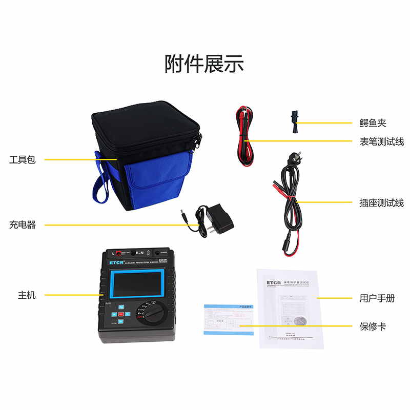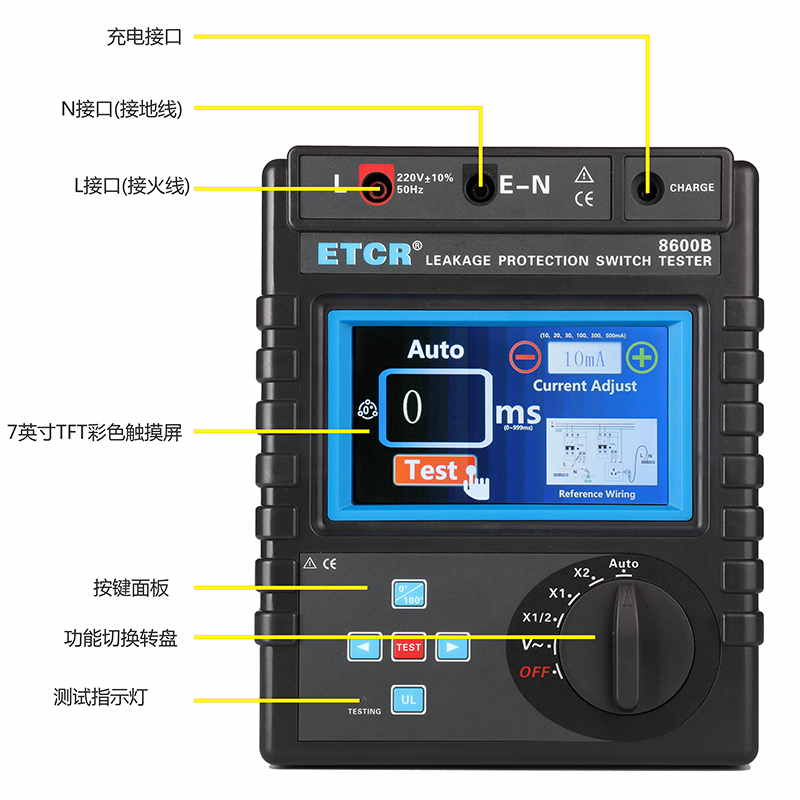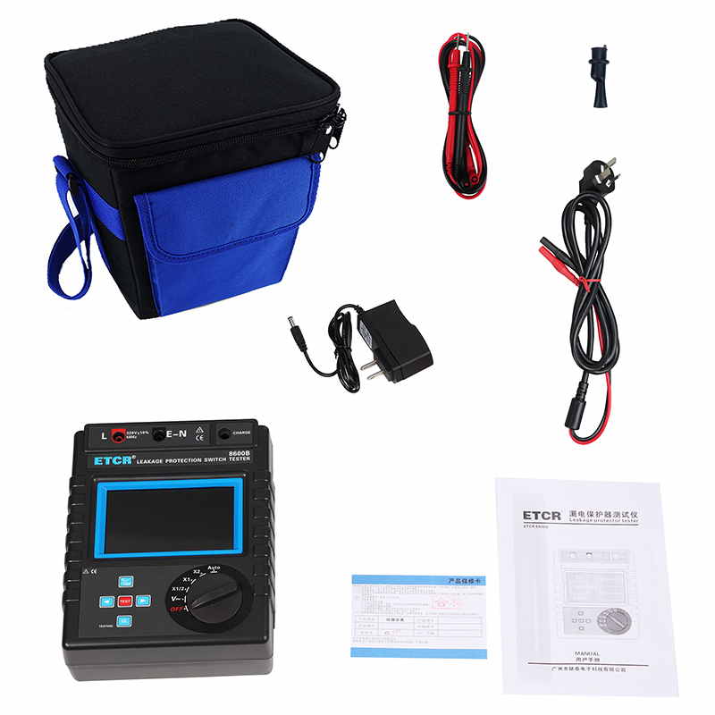 ETCR8600B漏電保護器測試儀5mA~1000mA,十六檔0ms~999msAC 0~600V觸摸彩屏鋰電池