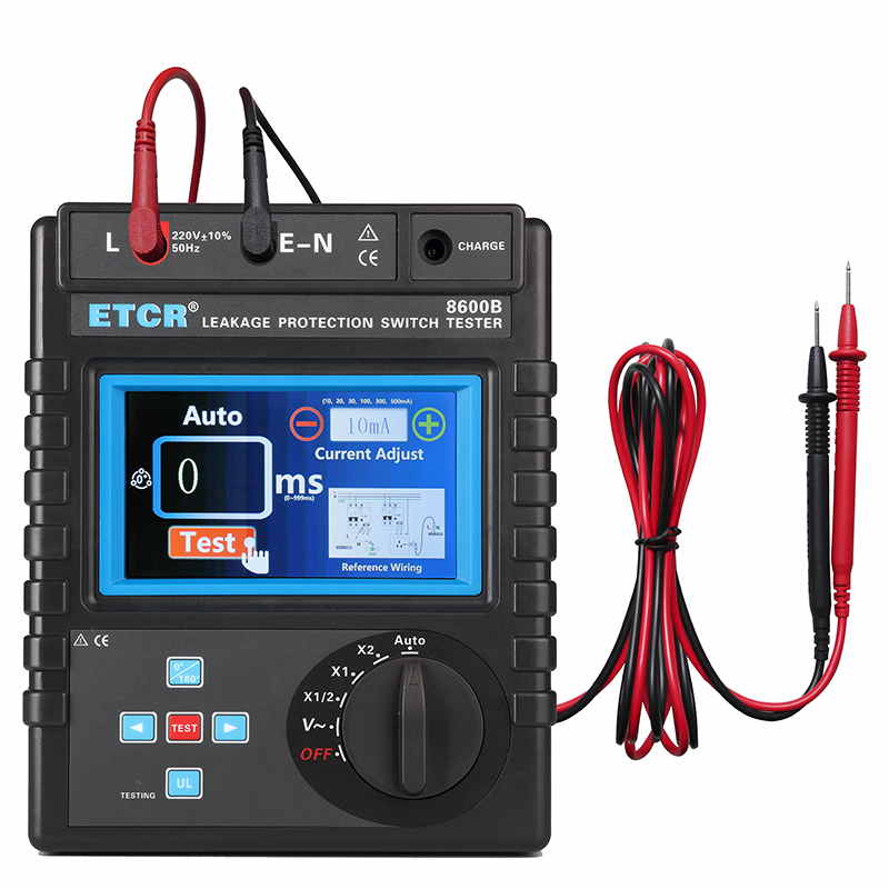 ETCR8600B漏電保護(hù)器測試儀5mA~1000mA,十六檔0ms~999msAC 0~600V觸摸彩屏鋰電池