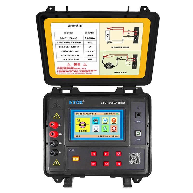 ETCR3660A微歐計1.0uΩ~2500.0Ω0.1uΩ10A觸摸彩屏
