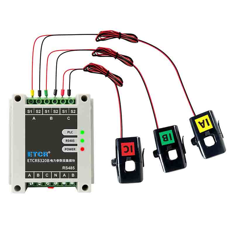 ETCR8320系列電力參數(shù)采集模塊用于現(xiàn)場(chǎng)在線(xiàn)實(shí)時(shí)監(jiān)測(cè)、記錄3路交流電流、交流電壓、無(wú)功功率、有功功率、視在功率、功率因數(shù)、畸變率、諧波、不平衡度、潮流方向等電力參數(shù)。采集模塊由采集器、開(kāi)口式互感器等組成。采集模塊可接入3路電流互感器、3路電壓。采集器具有RS485通訊功能,提供MODBUS通訊協(xié)議,便于用戶(hù)二次開(kāi)發(fā),B型具有PLC通訊?;ジ衅饔袌A形、扁口、防水型等多種款式可供用戶(hù)選擇,開(kāi)口式結(jié)構(gòu)CT現(xiàn)場(chǎng)安裝時(shí)無(wú)需停電無(wú)需斷開(kāi)電纜線(xiàn),安裝方便安全。采集模塊體積小巧,特別適合安裝在JP柜、箱變電房等空間狹小的場(chǎng)所使用。采集模塊有2種安裝方式:螺釘安裝或?qū)к壈惭b。廣泛應(yīng)用在電氣裝置的交流電流、接地環(huán)流、交流電壓的在線(xiàn)監(jiān)測(cè),為用電檢查人員提供安全、準(zhǔn)確、便捷的電力參數(shù)。