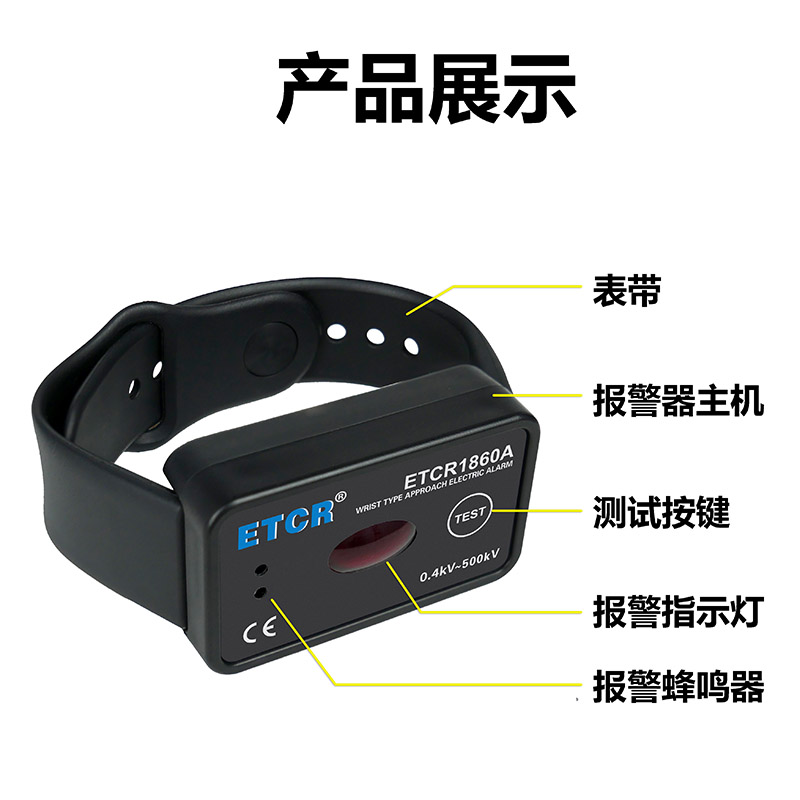 產(chǎn)品特點(diǎn):1、報(bào)警器佩戴在作業(yè)人員手腕上,全方位檢測空中電場,靈敏度高。
