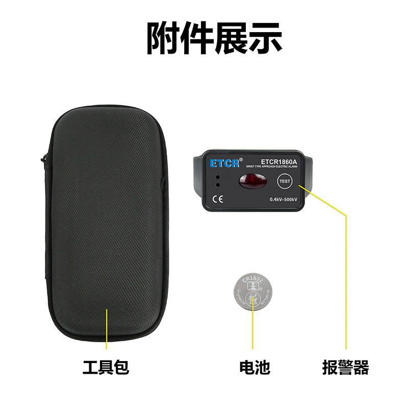 ETCR1860A手腕式近電報(bào)警器為近電作業(yè)人員提供一款安全、實(shí)用、便捷的新型高壓報(bào)警裝置。帶電作業(yè)時(shí),操作人員與帶電體的安全距離不能低于相關(guān)工作規(guī)程的要求。報(bào)警器無開機(jī)按鍵,作業(yè)人員佩戴本報(bào)警器后,報(bào)警器檢測空中電場,在接近高壓帶電體時(shí),根據(jù)電壓等級(jí)相應(yīng)的安全距離,報(bào)警器感應(yīng)的電場大于閾值時(shí),報(bào)警器自動(dòng)觸發(fā)報(bào)警功能,發(fā)出聲光報(bào)警,提醒電氣工作人員注意安全,避免發(fā)生高壓觸電事故。