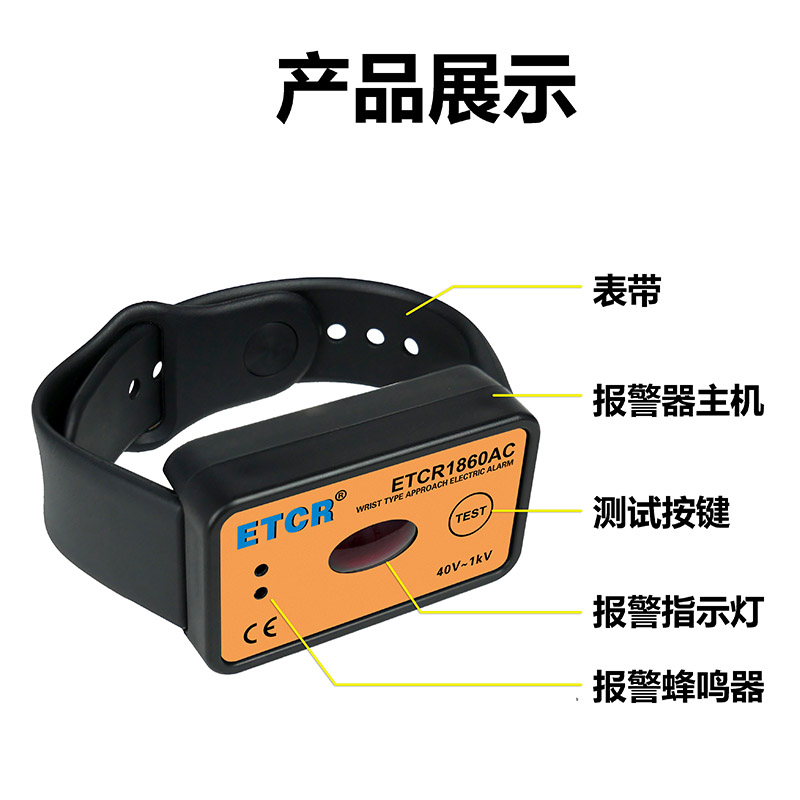 | ETCR1860C手腕式低壓近電報警器 | 40V~1kV | 約12個月 | IP54 | 聲光報警 |