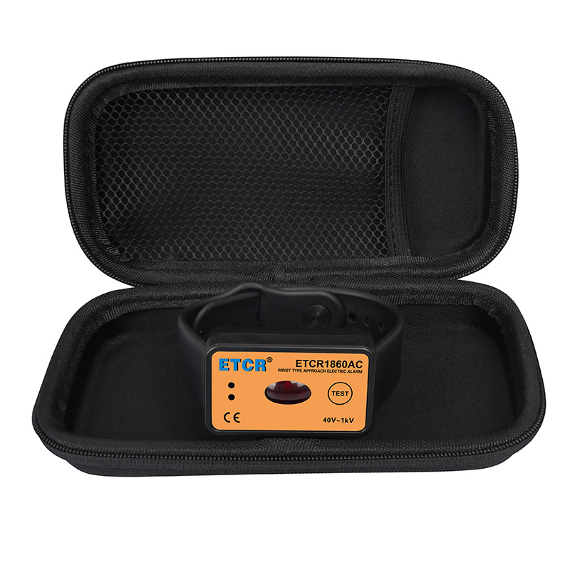 ETCR1860AC手腕式近電報警器為近電作業(yè)人員提供一款安全、實用、便捷的新型近電報警裝置。帶電作業(yè)時,操作人員與帶電體的安全距離不能低于相關工作規(guī)程的要求。報警器無開機按鍵,作業(yè)人員佩戴本報警器后,報警器檢測空中電場,在接近高壓帶電體時,根據(jù)電壓等級相應的安全距離,報警器感應的電場大于閾值時,報警器自動觸發(fā)報警功能,發(fā)出聲光報警,提醒電氣工作人員注意安全,避免發(fā)生高壓觸電事故。