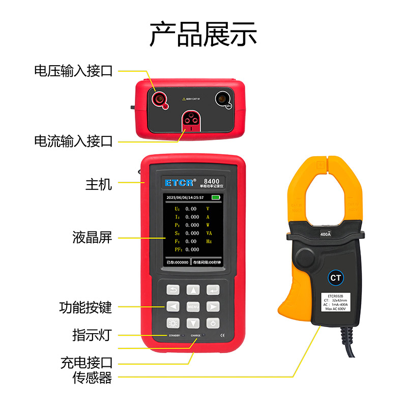 在線監(jiān)測(cè)與記錄單相電力的工作電流、電壓、頻率、功率。用于低壓線路及用電設(shè)備的故障排查、線路檢修。