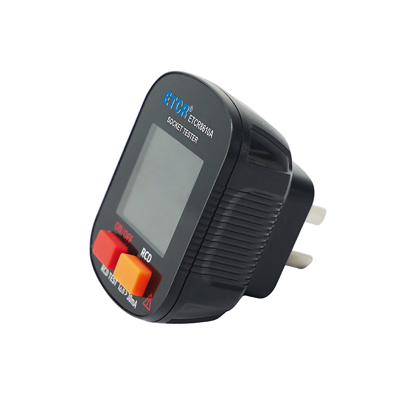ETCR8610A插座式漏電保護器測試儀主要用于三孔電源插座接線的極性檢測和漏電開關(guān)的保護功能檢測,能快速準確的檢測出插座的接線情況,能及時檢測出導(dǎo)致人員觸電、電氣火災(zāi)、設(shè)備運行異常等插座線路問題。廣泛應(yīng)用于消防、安監(jiān)、家裝、實驗室、工廠以及家庭線路檢測和維修。