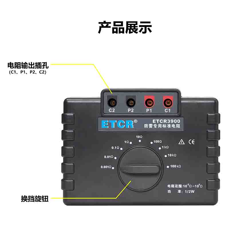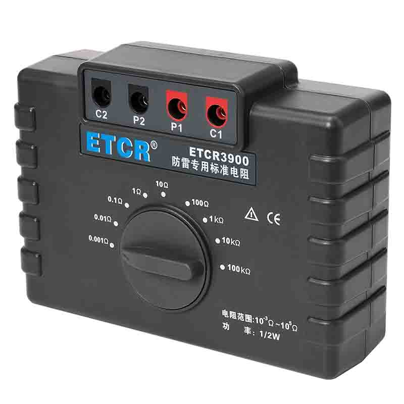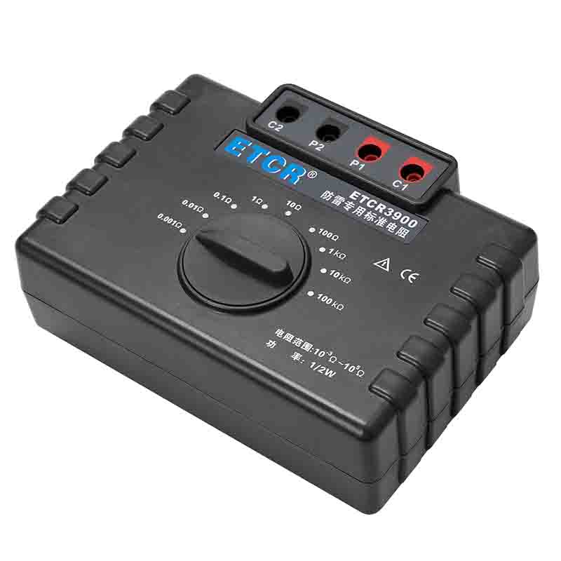 ETCR3900防雷專用標準電阻由9個1/2W高精度線繞電阻組成,校準電阻時直接換擋測試,無需更換測試線,性能穩(wěn)定結構堅固,校準測試特別方便。采用的高精度線繞電阻最高精度達0.05%,其阻值包括1mΩ、10mΩ、100mΩ、1Ω、10Ω、100Ω、1kΩ、100kΩ完全滿足國家氣象局38號令【雷電防護裝置檢測資質管理辦法】中規(guī)定的10-3~105Ω范圍。本標準電阻主要用于接地電阻測試儀、等電位測試儀等儀器的校準。廣泛應用于建筑質檢站、監(jiān)理公司、建筑施工單位、防雷公司、電力部門等。