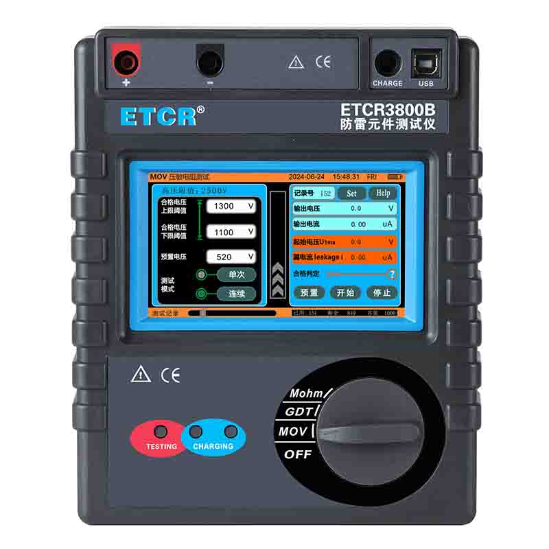 | ETCR3800B防雷元件測試儀 | 2500V/10GΩ | 50V~3000V | 1mA | 有 | 有 | 有 |