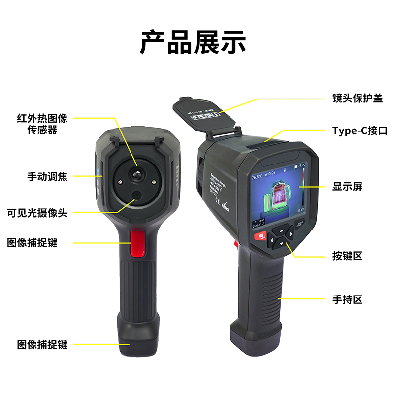 產(chǎn)品圖片產(chǎn)品型號名稱像元尺寸測溫范圍紅外分辨率熱成像鏡頭焦距空間分辨率存儲