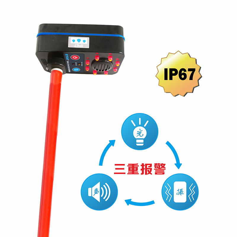 2、防護(hù)等級(jí)IP67,可用于水體驗(yàn)電報(bào)警(需使用低壓檔,安裝絕緣桿)。