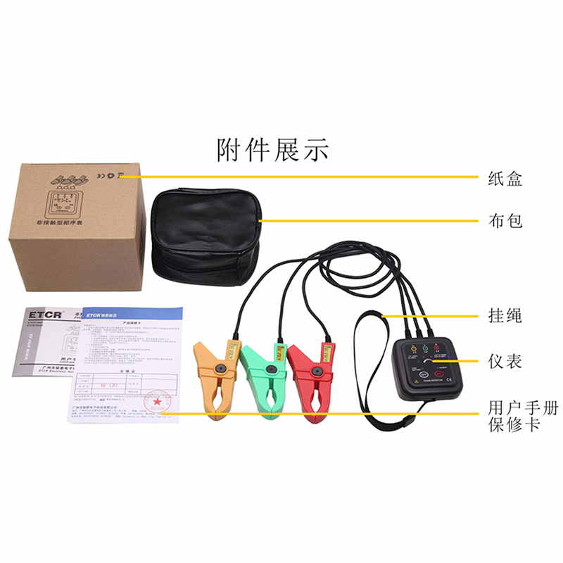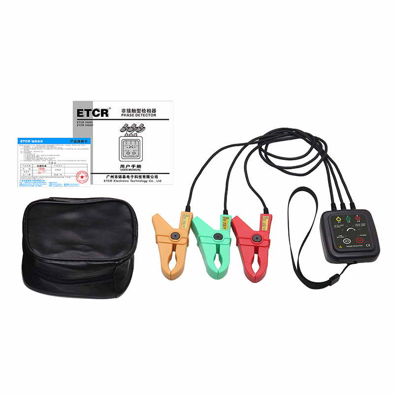 ETCR1000D非接觸型檢相器又稱(chēng)非接觸相序表、相序檢測(cè)儀、電機(jī)三相檢測(cè)儀、相序測(cè)試儀、馬達(dá)轉(zhuǎn)向測(cè)試儀,用于相序檢測(cè)(正相、逆相、缺相)、活線檢查、簡(jiǎn)易檢電、火線識(shí)別、缺相判斷、斷線位置查找、線路檢修。