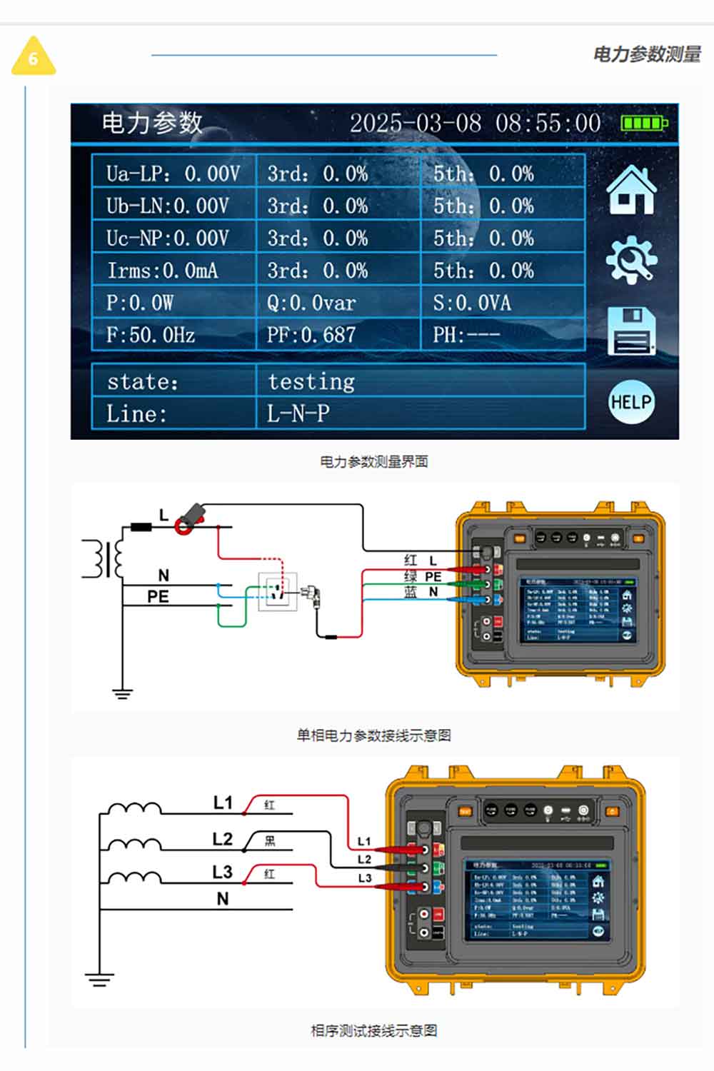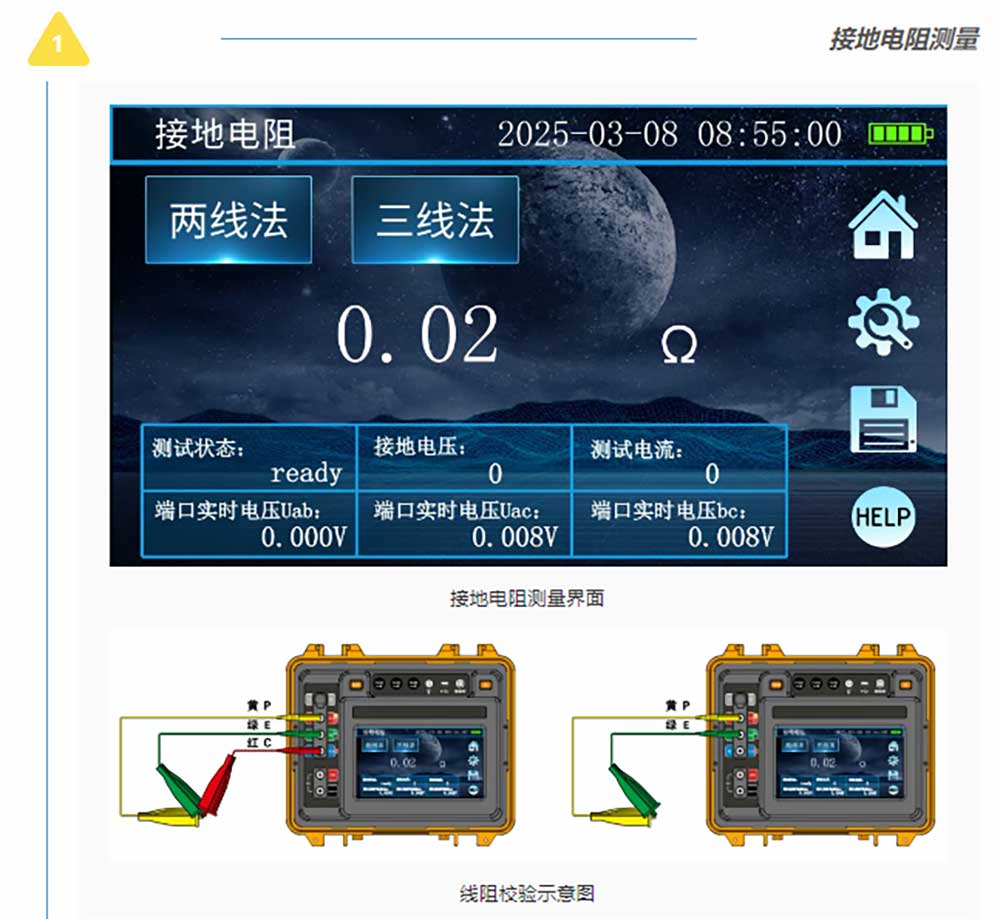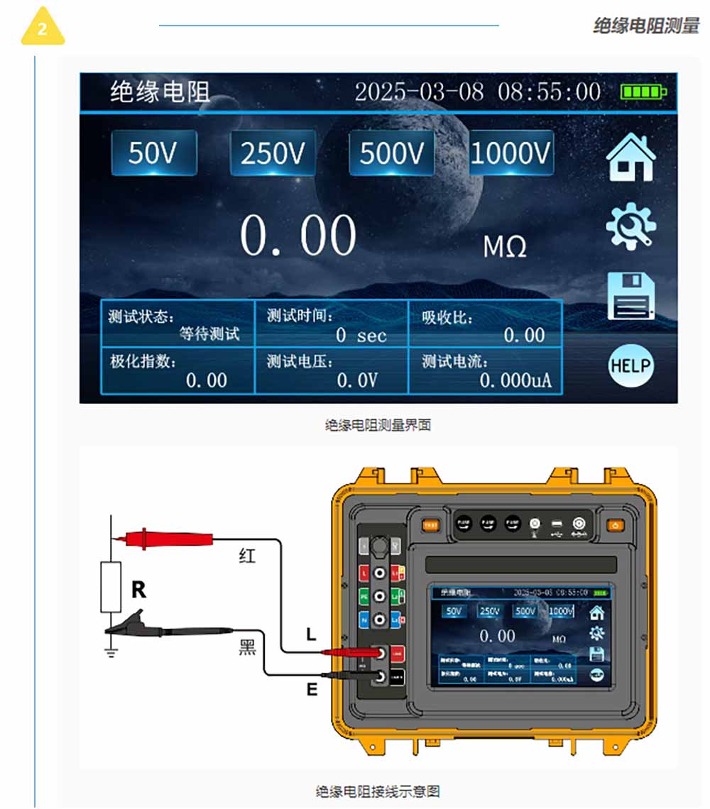 測試示意圖及接線標(biāo)識用不同顏色區(qū)分方便用戶在不同功能下的不同使用習(xí)慣。